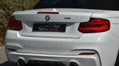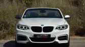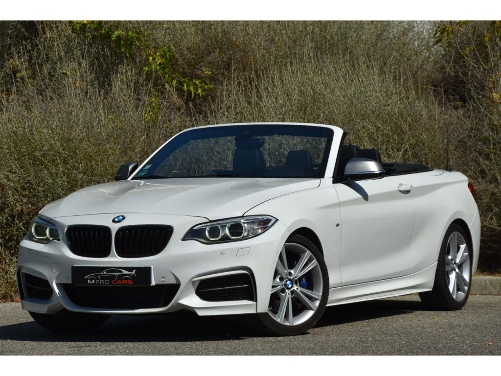 "Confort" et "Sport", 2 Porte-gobelets sur la console centrale, 5 cm) avec commande par "Controller" iDrive et 6 touches de raccourcis programmables, 5" (16, 6 haut-parleurs, ABS (Antiblocage de roues), Accoudoir central avant coulissant avec coffre de rangement, Aide au démarrage en côte, Airbags frontaux conducteur et passager (déconnectable côté passager), Airbags latéraux avant, Anneaux d'arrimage dans le coffre, Anti-démarrage électronique, Appel d'Urgence Intelligent, Appuis tête ajustables, Assistance au freinage d'urgence, Autoradio BMW Professional CD, Badge "xDrive" apposé au niveau du coffre à gauche, Badge M en chrome sombre apposé sur les flancs de la voitures, Baguettes de seuil en aluminium avec emblème M, Boîte de vitesses automatique Sport à 8 rapports, Capote acoustique électrique, Ceintures de sécurité avant à 3 points avec prétensionneur pyrotechnique et limiteur d'effort, Check-Control et indicateur de température extérieure, Clés radiocommandées à mémorisation automatique des réglages "Personal Profile", Clés radiocommandées avec application bleue, Climatisation automatique 3 zones avec filtre microporeux, Console centrale façon laque noire, Contour de calandre chromé, Contrôle de freinage en courbe CBC, Contrôle dynamique de la stabilité DSC, Contrôle Dynamique de la Traction DTC, Coques de rétroviseurs extérieurs en ?Ferricgrau?, de la radio et de la climatisation, Démarrage sans clé via le bouton de démarrage Start/Stop avec contour chromé, Détecteur de pluie et allumage automatique des projecteurs, Direction DirectDrive à démultiplication variable, Dossier de banquette arrière rabattable avec trappe à ski élargie, Eclairage d'ambiance à deux couleurs au choix, Eclairage de bienvenue et d'accompagnement "Follow-me-home", Eclairage plafonnier soft-on/soft-off et éclairage du coffre, Ecran d'information central couleur 6, Feux arrière avec LED et guides de lumière, Feux de stop dynamiques, Filet anti-remous, Fixations Isofix aux places latérales arrière, fonction recyclage d'air automatique et capteur d'ensoleillement, Freins à disques ventilés à l'avant et à l'arrière, Freins Sport M, Inscription ?M235i? sur le coffre, Inserts décoratifs en Aluminium "Hexagon" souligné de bleu mat, Interface Bluetooth pour téléphone portable (mains-libres), Jantes en alliage léger 18'' style 436 M à rayons doubles, Kit aérodynamique M, Kit Eclairage, Kit fumeur, Kit rangement, Levier de vitesses M raccourci en cuir ?Walknappa?, man?uvre en 20 s. jusqu'a 50 km/h, Mesure individuelle de pression des pneumatiques, Mesures BMW EfficientDynamics, Miroirs de courtoisie intégrés aux pare-soleil, Navigation multimédia Business, Ordinateur de bord, Pack Advanced Xenon, Pare-chocs auto-régénérants jusqu'à 4 km/h avec éléments déformables jusqu'à 15 km/h, Pneumatiques avec technologie ?High-Grip? qui améliore la motricité transversale dans les courbes et réduit les distances de freinage (pas avec pneumatiques RSC permettant le roulage à plat), port audio USB et streaming audio Bluetooth (avec fonction "Music Search"), pré-charge du circuit de freinage au lever de pied, prise AUX-IN, Prise de courant 12 V dans la console centrale avant, Projecteurs bi-xénon avec lave-projecteurs, Radars de stationnement arrière PDC avec représentation graphique des obstacles sur l'écran central, Radars de stationnement avant et arrière PDC avec représentation graphique des obstacles sur l'écran d'information central, Repose-genou pour la jambe droite du conducteur, Repose-pied conducteur siglé "M", Rétroviseurs extérieurs avec rappels de clignotants intégrés, Rétroviseurs extérieurs électrochromes et rabattables électriquement y compris Rétroviseur intérieur électrochrome, Rétroviseurs extérieurs et buses de lave-glace chauffants, séchage des disques de freins et compensation du fading, Sélecteur de mode de conduite - 3 modes : "ECO PRO", Sellerie Tissu/Alcantara "Hexagon" anthracite avec surpiqures contrastantes bleues, Services Après-Vente connectés BMW TeleServices, Seuils de portes à l'avant siglés ?M235i?, Shadow Line brillant BMW Individual, Sièges Advanced pour conducteur et passager avant, Sièges avant avec soutien lombaire, Sièges avant chauffants, Sièges avant électriques à mémoires conducteur, Suspension SelectDrive, Système de maintenance intelligent Condition Based Service (CBS), Système Hi-Fi, Système Hi-Fi Harman Kardon, Tapis de sol en velours, Technologie 4 roues motrices intelligente xDrive, Teinte de carrosserie "Alpinweiss" unie, Touches de chrome autour des buses d'aération de la console centrale, Train arrière multibras, Train avant à double articulation, Triangle de présignalisation avec kit de premiers secours, Troisième feu stop à LED, Verrouillage centralisé avec télécommande, Vide-poches ergonomiques dans les portes avant, Vitrage teinté pour réduire l'échauffement dû à l'ensoleillement, Vitres électriques avant avec commande par impulsion et protection anti-pincement, Volant chauffant, Volant Sport M gainé cuir