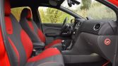 3ème feu stop arrière, 4 freins à disque, à impulsion côté conducteur, ABS avec répartiteur électronique de freinage (EBD), Air conditionné à régulation automatique 2 zones, Airbag passager déconnectable, Airbags latéraux conducteur et passager, Airbags rideaux, Appuie-tête à l'avant, Appuie-tête arrière, Appuie-tête arrière réglables en hauteur, Badges ST à l'arrière et sur les ailes avant, Baguettes de protection latérales couleur carrosserie, Becquet arrière hautes performances couleur carrosserie, Boîte à gants éclairée, Bouclier arrière spécifique intégrant une double sortie d'échappement, Bouclier avant spécifique avec projecteurs antibrouillard, Cadrans électroluminescents spécifiques, Ceintures de sécurité 3 points avant et arrière, Ceintures de sécurité avant à réglage en hauteur, Cerclage de compteur, Commutateur de re-circulation de l'air, Confort et Sport (lorsque direction assis tée électrohydraulique), Console centrale avec casier de rangement AV, Contrôle dynamique de stabilité (ESP) avec assistance au freinage d'urgence (EBA), Direction assistée Electrohydraulique EHPAS, Eclairage de coffre, Emplacements pour crochets de fixation ISOFIX, Essuie-glace à balayage intermittent et lave-glace électrique, Feu arrière antibrouillard, Filtre à pollen Micronair, Garnissage de pavillon noir, Grille de calandre surdimensionnée façon nid d'abeilles, Instrumentation déportée indiquant la température et la pression d'huile et la pression du turbo, Jantes alliage 18'' spécifiques ST, Jupes latérales couleur carrosserie, Lève-vitres avant électriques, Levier de vitesse et levier de frein à main en cuir avec inserts façon aluminium, Lunette arrière chauffante, Ordinateur de bord, Pack Fumeur Plus, Pack Recaro Tissus, Pare-soleil conducteur et passager avec miroir de courtoisie, Pédalier en aluminium, Phares au xénon avec buses de lave-phares, Plaques de seuils ST façon aluminium, poignées intérieures de portes façon aluminium, porte-gobelets et accoudoir central, Pré-équipement radio, réglables en hauteur, Réglage de la direction assistée selon 3 modes : Standart, Rétroviseur intérieur électrochrome, Rétroviseurs extérieurs avec répétiteurs de clignotant intégrés, Siège conducteur à réglage en hauteur, Siège conducteur à réglage manuel 8 positions avec support lombaire, Sièges arrière repliables à dossier rabattable 60/40, Sièges avant anti-glissement, Sièges avant inclinables, Sièges avant Recaro tissu bi-ton, surdimensionnés à l'avant, Suspensions ST spécifiques, Système anti-démarrage électronique PATS, Système audio Sony CD compatible MP3 avec commandes au volant, Tapis de sol avant et arrière ST, Trappe de réservoir verrouillable, Verrouillage centralisé à télécommande, Vitres teintées, Volant 3 branches gainé de cuir avec branche inférieure frappée du logo ST, Volant réglable en inclinaison, Volant réglable en profondeur